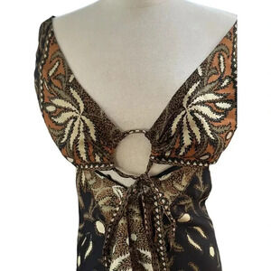 Nicole Miller Brown green Sleeveless V-Neck Midi Dress Size Medium