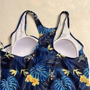 A beautiful Nicole Miller one-piece swimsuit, featuring a captivating blue and yellow floral design. The classic silhouette ensures a comfortable fit, making it ideal for both swimming and beach lounging. With its bold colors and high-quality material, this swimsuit is a must-have for any swim occasion. I found it to run slightly small for 3x more suitable for a 1x or 2x