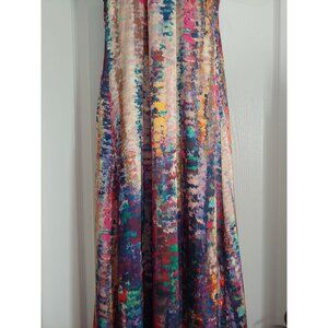 Nicole Miller Water Color Artsy Elegant Silky Sleeveless Maxi XS Whimsy