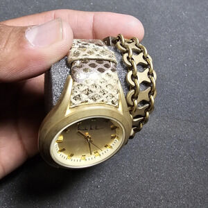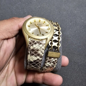 Nicole Miller Whitney Python-Embossed Leather Double-Wrap Strap 16" Quartz Watch shows signs of wear such as scratches on case and crystal see pictures for reference