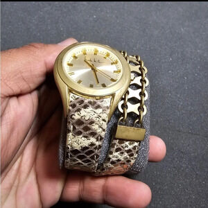 Nicole Miller Whitney Python-Embossed Leather Double-Wrap Strap 16" Quartz Watch shows signs of wear such as scratches on case and crystal see pictures for reference
