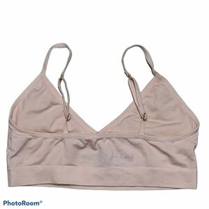 Light pink wireless bralette, pullover style and adjustable spaghetti straps.
