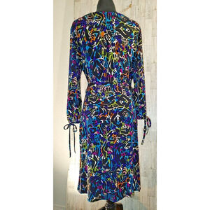 Nicole Miller Woman's Multicolored Dress with attached Belt V neck Stretch