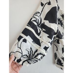 Nicole Miller Black White Floral Off The Shoulder Puff Sleeve 100% Linen Blouse Large