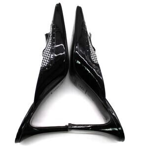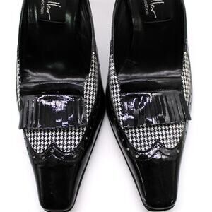 Nicole Miller Womens 7 Heeled Mule Black Houndstooth Kilty Witchy Preppy Goth