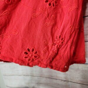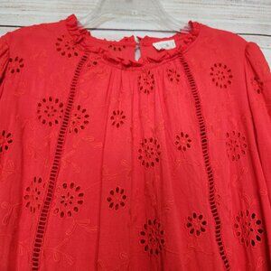 Nicole Miller Womens Artelier Long Sleeve Blouse Embroidered Eyelet Red Large