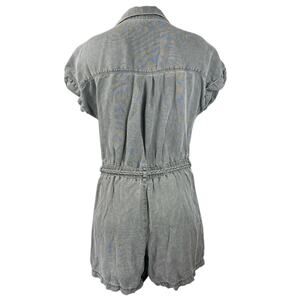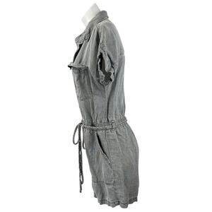 Nicole Miller Women's Gray Short Sleeve Collar Button Up Tie Jumpsuit Romper S