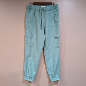 Nicole Miller Womens M 100% Linen Jogger Cargo Pants Mint Green Pockets Boho