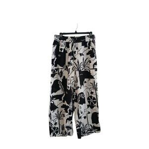 Nicole Miller Womens M Linen Wide Leg Pants Floral Tropical Print Resort Travel