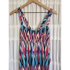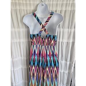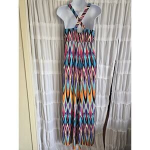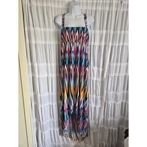 Nicole Miller Womens Medium Colorful Ikat Maxi Dress Artsy Flowy Summer Resort