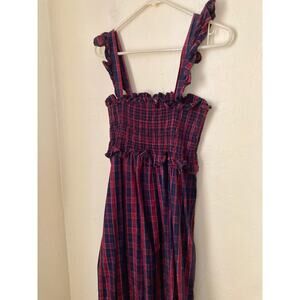 Nicole Miller Women's Midi Dress Size L Red Dark Navy Blue Plaid Ruffle NWOT