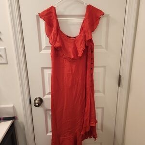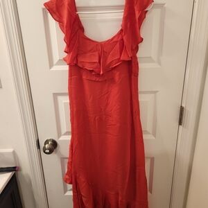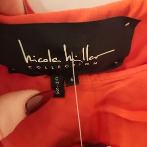 Nicole Miller Womens Orange Square Neck Flutter Sleeve Sheath Dress 6 #N642