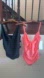 Stylish one-piece swimsuits in black and coral. Perfect for beach days.