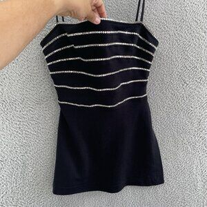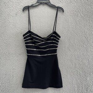 Nicole Miller Women's Spaghetti Strap Tank Top Small Black Side Splits 90’s Y2K