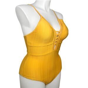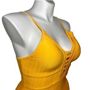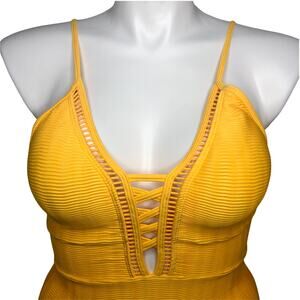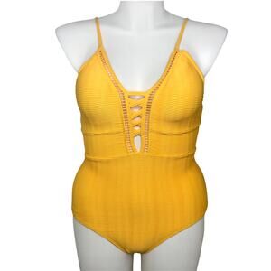 Nicole Miller Yellow Plunging Neckline One Piece Swimsuit - Size 10