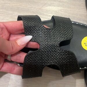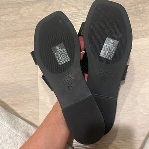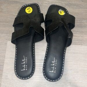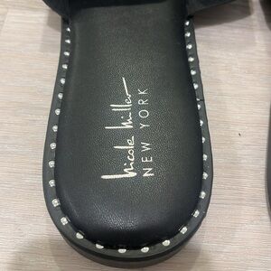 🖤Nicole Miller black flats silver studded sandals🖤 new 9.5