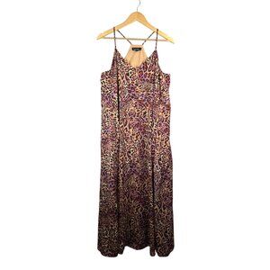 Nicole Miller leopard print satin flowy boho maxi dress Brown pink sz M