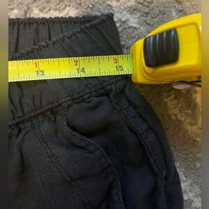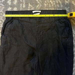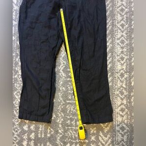 Flattering seem down the front of each leg. Pockets in the front and back. 100% linen
