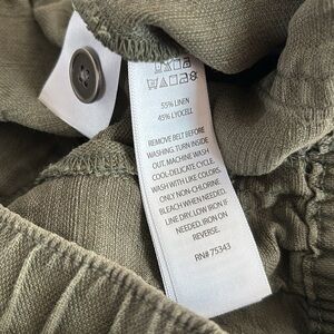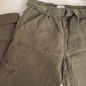 Nicole Miller olive green cuffed cargo style elastic waist linen Ilene pants