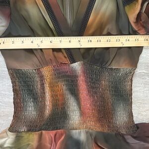 Nicole Miller ruffle tiered multi colored v neck print dress Sz S
