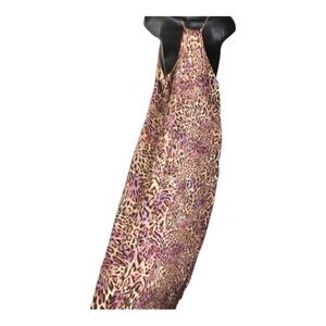 Nicole Miller satin effect animal print brown purple violet tulip multi print v-neck halter maxi dress size small new