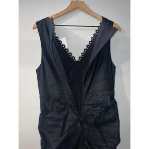 Nicole Miller v-neck linen blend black midi dress size 12