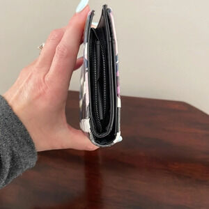 Nicole Miller wallet Black with floral pattern Faint blue mark on front see pic In good condition