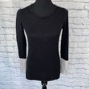 Nicole Miller women S color block longsleeve scoopneck sweater black/silver