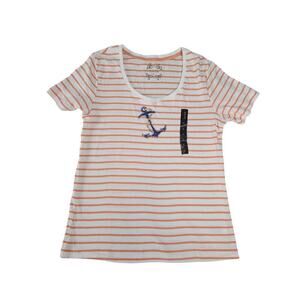 Nicole Miller women's nautical t-shirt white striped NWT Size Large Cruise