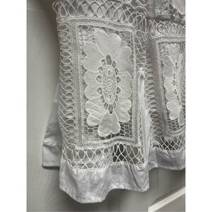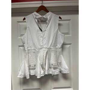 Nicole Miller New York White Heavy Lace Sleeveless Tie Back Peplum Blouse sz XL