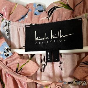 Nicole Miller Pink Silk Blend Floral Tiered Ruffle Long Sleeve Dress Sz Small