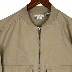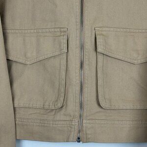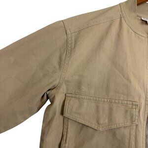 Nicole MillerTan Cropped Utility Jacket Small Cargo Pockets Full Zip Cotton