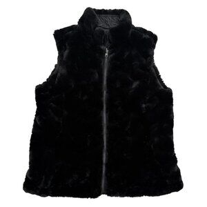 Nicole Milller Faux Fur Quilted Vest Black Reversable S Nicole Miller Zip Cozy
