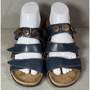 Nicole Navy Blue Wedge Sandals Size 9 Wide Strappy Comfortable Slip On Wedge