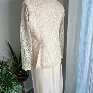 Nicole Paris Women’s Size 10 Skirt Suit Blush Lace Overlay Satin Trim Elegant