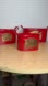 Stylish red metal baskets by Nicole. Features elegant gold accents. Ideal for home decor.