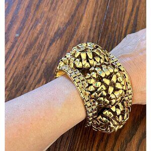 Nicole Romano Ravenea Chunky Cuff Bracelet Goldtone 2” Wide