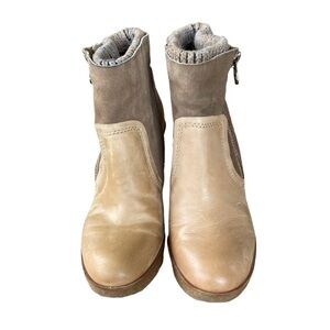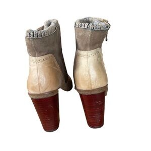 These feature a heavy knit collar inside the boot and stacked 3.5inch heel. Texture blocking with a casual and unstructured shaft zip that can be worn zipped or not for added interest. Some light marks from use but overall are in good used condition! Super cute for the cool weather!