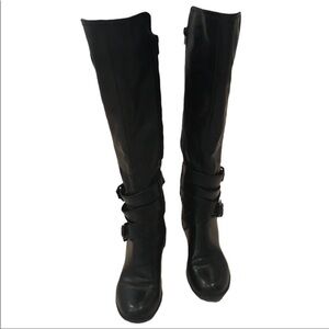 Nicole Rugby Black Knee High Buckle Detail Side Zip Boots Size 6M