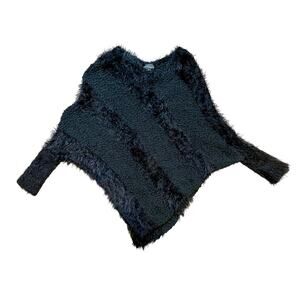 Nicole Sabbattini Black Knit Poncho w/ Arm Cuffs Soft Stretchy Diagonal Stripe L