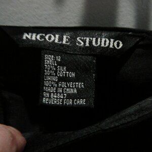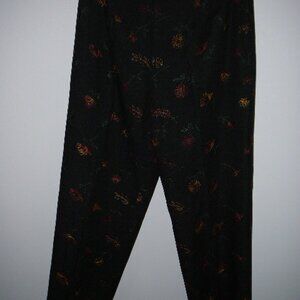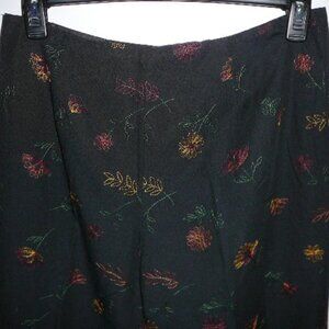 Nicole Studio Embroidered Flowers & Stems Lined Black Silk Blend Dress Pants-12