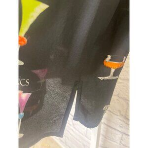 Nicole Taylor Silk Blouse Art Deco Blouse Cocktail Drink Print MED long sleeve