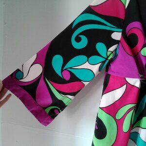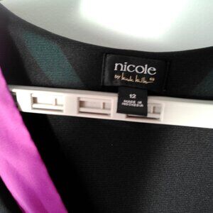 The Nicole by Nicole Miller Black Pink Floral V Neck Empire Waist Dress in size 12 is a stylish and versatile piece suitable for various occasions. This A-Line dress features a flattering empire waist and a trendy V-neckline, with a charming floral pattern in a multicolor palette. Made from a blend of polyester and spandex, the dress is comfortable and lightweight, making it perfect for all seasons. The 3/4 kimono sleeves add a touch of elegance, while the pullover closure and midi length offer convenience and sophistication. Ideal for travel, weddings, parties, and more, this dress is a must-have for any fashion-forward woman.