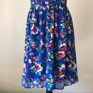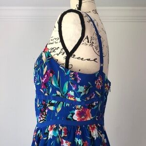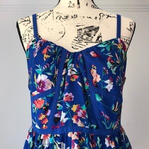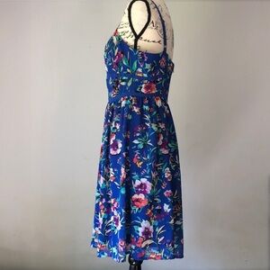 Blue floral printed dress by Nicole by Nicole Miller with adjustable straps and seaming details on bust. Please feel free to ask any questions before purchase. Size 10.