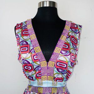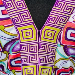 Nicole by Nicole Miller Greek Abstract Print V-Neck Tie Back Blouse 14