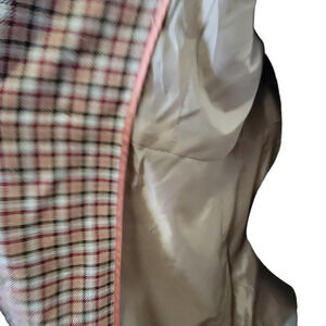 Nicole by Nicole Miller Plaid Checkered Button Front Tie Waist Preppy Peakcoat Jacket Size 10. Pink, green, white, creammulticolor