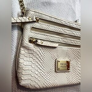 Nicole by Nicole Miller White Textured with Gold Accents Crossbody Bag Purse