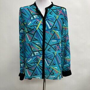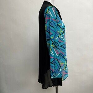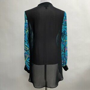 Nicole by Nicole Miller Women's Top Medium Blue Multicolor Sheer Back