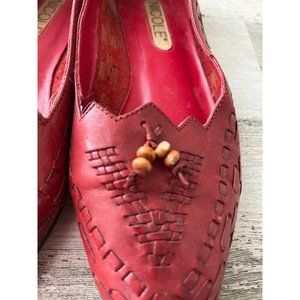 Nicole red braided leather slip on shoes with tassels size 6.5