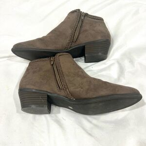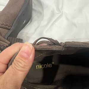 Nicole tan vegan eco friendly suede zip up fringe details size 9 ankle boots